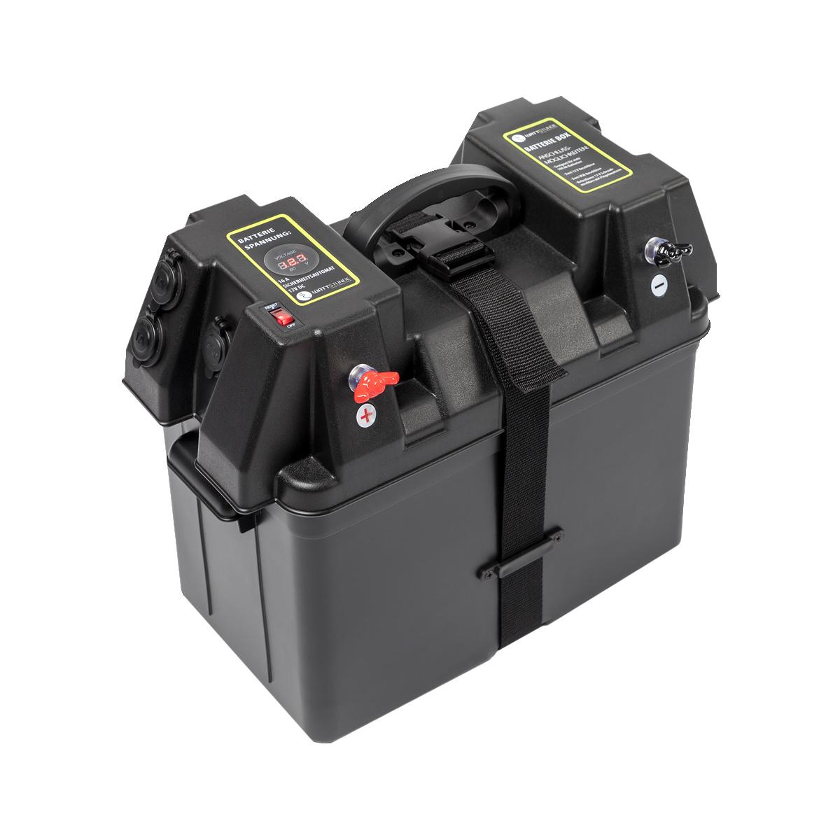 Sichere und mobile Lösung für 100Ah Solarbatterien. Der WATTSTUNDE Batteriekasten ist ausgelegt für die meisten 100Ah AGM oder Lithium Akkus. Dank dem eingebauten 16A Sicherheitsautomaten ist hier kein lästiges Sicherungswechseln mehr nötig. Nachdem dieser ausgelöst und den Fehler behoben hat, kann via Reset-Schalter die Akkubox wieder aktiv schalten. Die Akkus sind bestens durch das hochwertige PBT-Material vor äußeren Einflüssen geschützt und können einfach überall mit hingenommen werden. Einfach…