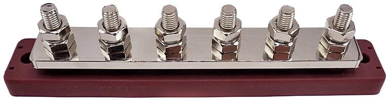 Die Sammelschienen werden für die Hochstromverteilung verwendet und dienen gleichzeitig als Anschlüsse für Batterien bzw. Gleichstromgeräte bis 70 V.Jede Sammelschiene ist mit einer abnehmbaren Schutzabdeckung ausgestattet und hat 6 x M8 Anschlüsse.Maße inkl. Schutzabdeckung (BxTxH): 200 x 32 x 60 mm6 x Hochstromverbindungen (M8)1 x AbdeckungStrombelastbarkeit von 150 Abis 70 V GleichstromFarbe: rot