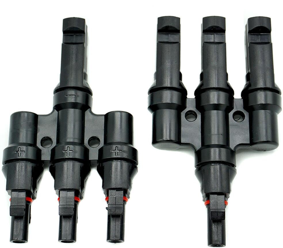 MC4 kompatibles T-Stecker Set – zur Parallelverschaltung von 3 SolarmodulenDie MC4 Stecker (+ und -) sind bestens dazu geeignet 3 Module parallel zu schalten. Durch das einfache Klick und Steck System (Snap-In) ist die Handhabung der Multicontact Stecker wirklich sehr einfach und kein weiteres Kabelgefummeln mehr notwendig. Sparen Sie sich mit den Steckern unnötigen Kabelsalat und schalten Sie Ihre Module gleich parallel. Durch die Stecker erspart man sich evtl. unnötige Kabellängen zu den Anschlüssen….