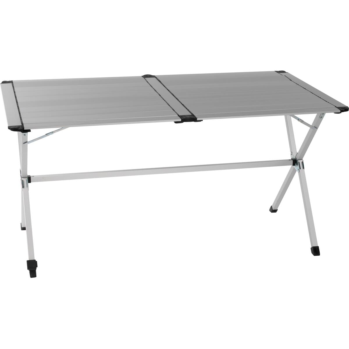 Leichtgewicht Alu Camping-Tisch mit rollbarer Tischplatte aus Alu Paneelen und höhenverstellbaren Tischbeinen. leichte Montage und kleines Packmaß mit verstellbarem Bein durchgehender Tischplatte Technische Daten: Material: Aluminium Maße: 110x70cm Gewicht: 5 kg Maximale Belastung: 30 kg Höhe: 70 cm Lieferumfang: 1 Rolltisch inkl. Aufbewahrungstasche