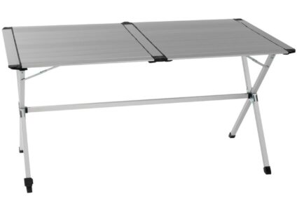Leichtgewicht Alu Camping-Tisch mit rollbarer Tischplatte aus Alu Paneelen und höhenverstellbaren Tischbeinen. leichte Montage und kleines Packmaß mit verstellbarem Bein durchgehender Tischplatte Technische Daten: Material: Aluminium Maße: 140x80cm Gewicht: 6,2 kg Maximale Belastung: 30 kg Höhe: 70 cm Lieferumfang: 1 Rolltisch inkl. Aufbewahrungstasche