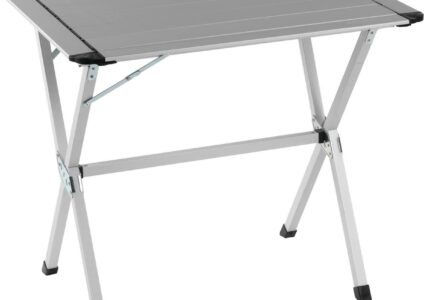 Leichtgewicht Alu Camping-Tisch mit rollbarer Tischplatte aus Alu Paneelen und höhenverstellbaren Tischbeinen. leichte Montage und kleines Packmaß mit verstellbarem Bein durchgehender Tischplatte Technische Daten: Material: Aluminium Maße: 80x60cm Gewicht: 4,5 kg Maximale Belastung: 30 kg Höhe: 70 cm Lieferumfang: 1 Rolltisch inkl. Aufbewahrungstasche