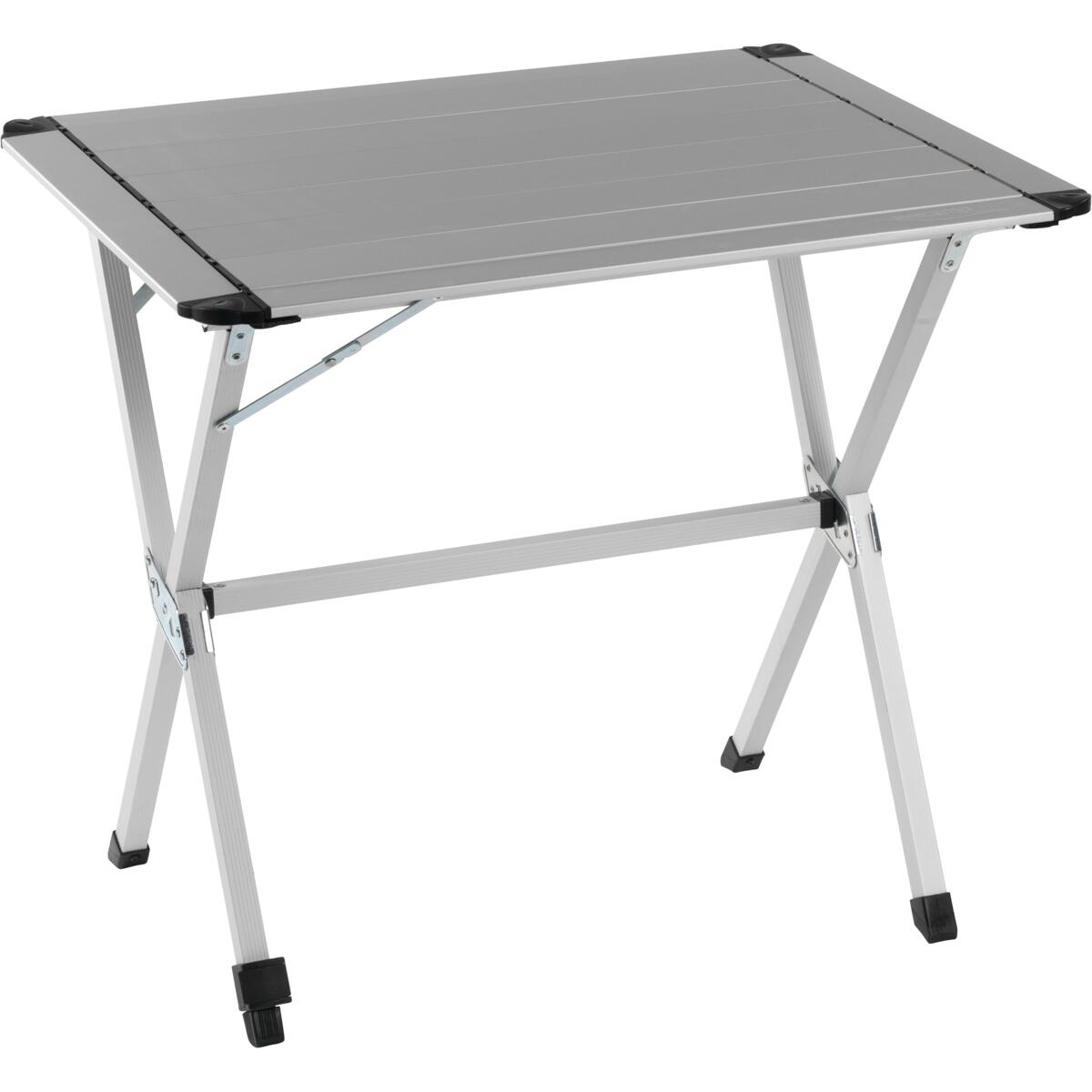 Leichtgewicht Alu Camping-Tisch mit rollbarer Tischplatte aus Alu Paneelen und höhenverstellbaren Tischbeinen. leichte Montage und kleines Packmaß mit verstellbarem Bein durchgehender Tischplatte Technische Daten: Material: Aluminium Maße: 80x60cm Gewicht: 4,5 kg Maximale Belastung: 30 kg Höhe: 70 cm Lieferumfang: 1 Rolltisch inkl. Aufbewahrungstasche