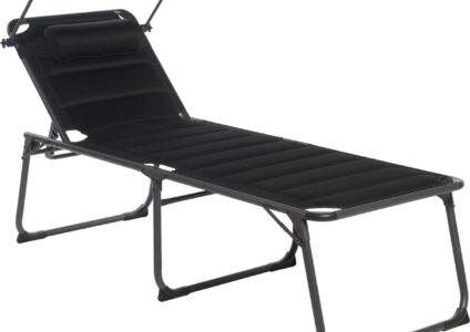 Graues Duramesh mit grauem Aluminiumrahmen mit Sonnenschutzdach Technische Daten Farbe: schwarz Maße (LxBxH): 198 x 69 x 48 cm Maße gefaltet (LxBxH): 89 x 69 x 26 cm Material: Aluminiumrahmen Gewicht: 7,0 kg Lieferumfang: 1 Sonnenliege