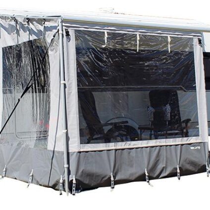 Kann mit der Fiamma Caravanstore Sackmarkise kombiniert und mit einem Reißverschluss geschlossen werden. In Verbindung mit einer Seitenwand entsteht ein gemütlicher Wohnraum und mehr Privatsphäre. mit Fenster Technische Daten: Passend für: Caravanstore 310 / 360 / 410 / 440 Maße (LxH): 205 x 220 cm Farbe: grau Lieferumfang: 1x Vorderwand mit Fenster