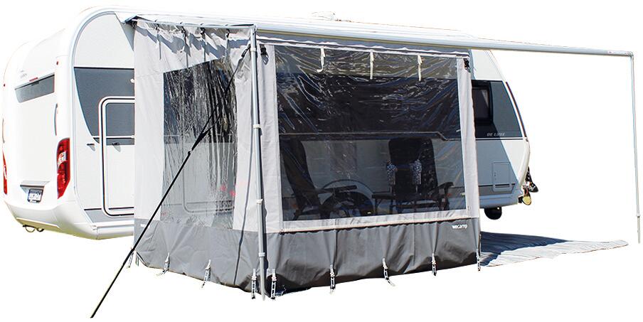 Kann mit der Fiamma Caravanstore Sackmarkise kombiniert und mit einem Reißverschluss geschlossen werden. In Verbindung mit einer Seitenwand entsteht ein gemütlicher Wohnraum und mehr Privatsphäre. mit Fenster Technische Daten: Passend für: Caravanstore 310 / 360 / 410 / 440 Maße (LxH): 205 x 220 cm Farbe: grau Lieferumfang: 1x Vorderwand mit Fenster