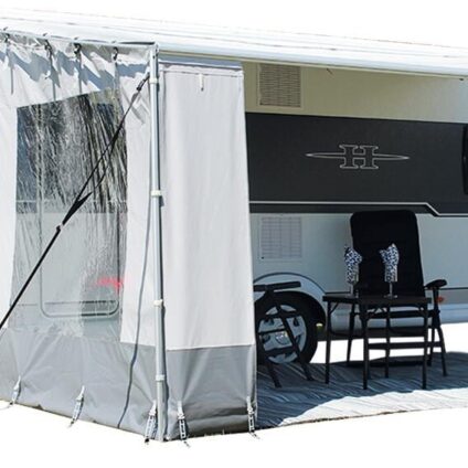 Kann mit der Fiamma Caravanstore Sackmarkise kombiniert und mit einem Reißverschluss geschlossen werden. In Verbindung mit einer Seitenwand entsteht ein gemütlicher Wohnraum und mehr Privatsphäre. mit Fenster Technische Daten: Passend für: Caravanstore 310 / 360 / 410 / 440 Maße (LxH): 50 x 220 cm Farbe: grau Lieferumfang: 1x Vorderwand mit Fenster