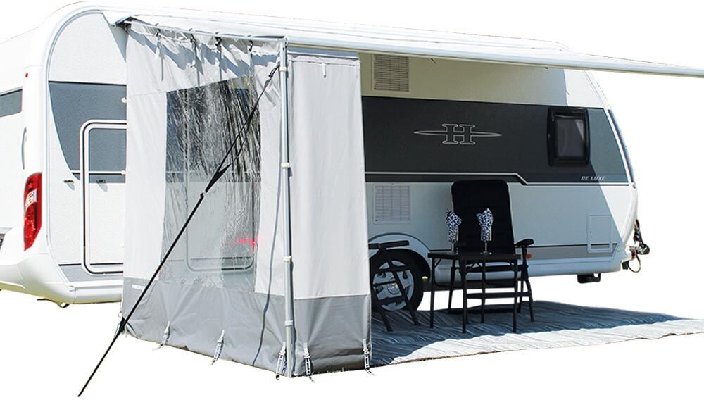Kann mit der Fiamma Caravanstore Sackmarkise kombiniert und mit einem Reißverschluss geschlossen werden. In Verbindung mit einer Seitenwand entsteht ein gemütlicher Wohnraum und mehr Privatsphäre. mit Fenster Technische Daten: Passend für: Caravanstore 310 / 360 / 410 / 440 Maße (LxH): 50 x 220 cm Farbe: grau Lieferumfang: 1x Vorderwand mit Fenster