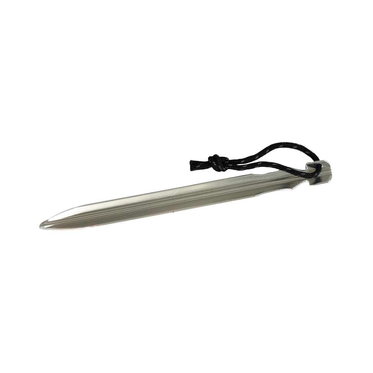 Heringe aus DUR Aluminium. geeignet für weiche bis mittelharte Böden Schnur für guten Zugriff beim Herausziehen des Herings Technische Daten Material: DUR Aluminium Größe: 17 cm Gewicht: 0,013 kg Farbe: silber Lieferumfang: 6 Stück
