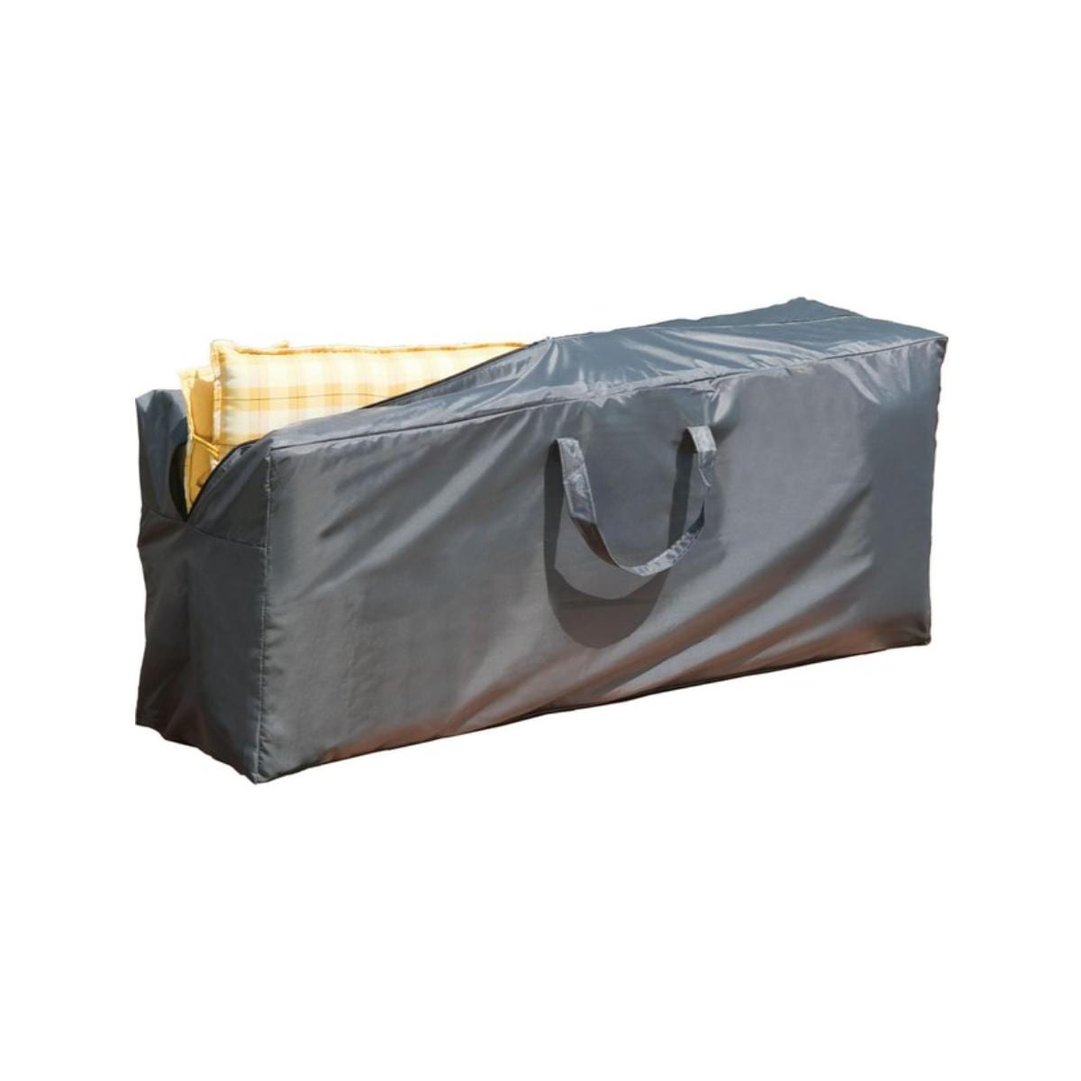 Schutzhülle für Sitzpolster. Mit Tragegriff für den Transport. Technische Daten Material: Polyester 40D Maße: 125 x 32 x 50 cm Farbe: schwarz Lieferumfang: Schutzhülle inkl. Tragetasche