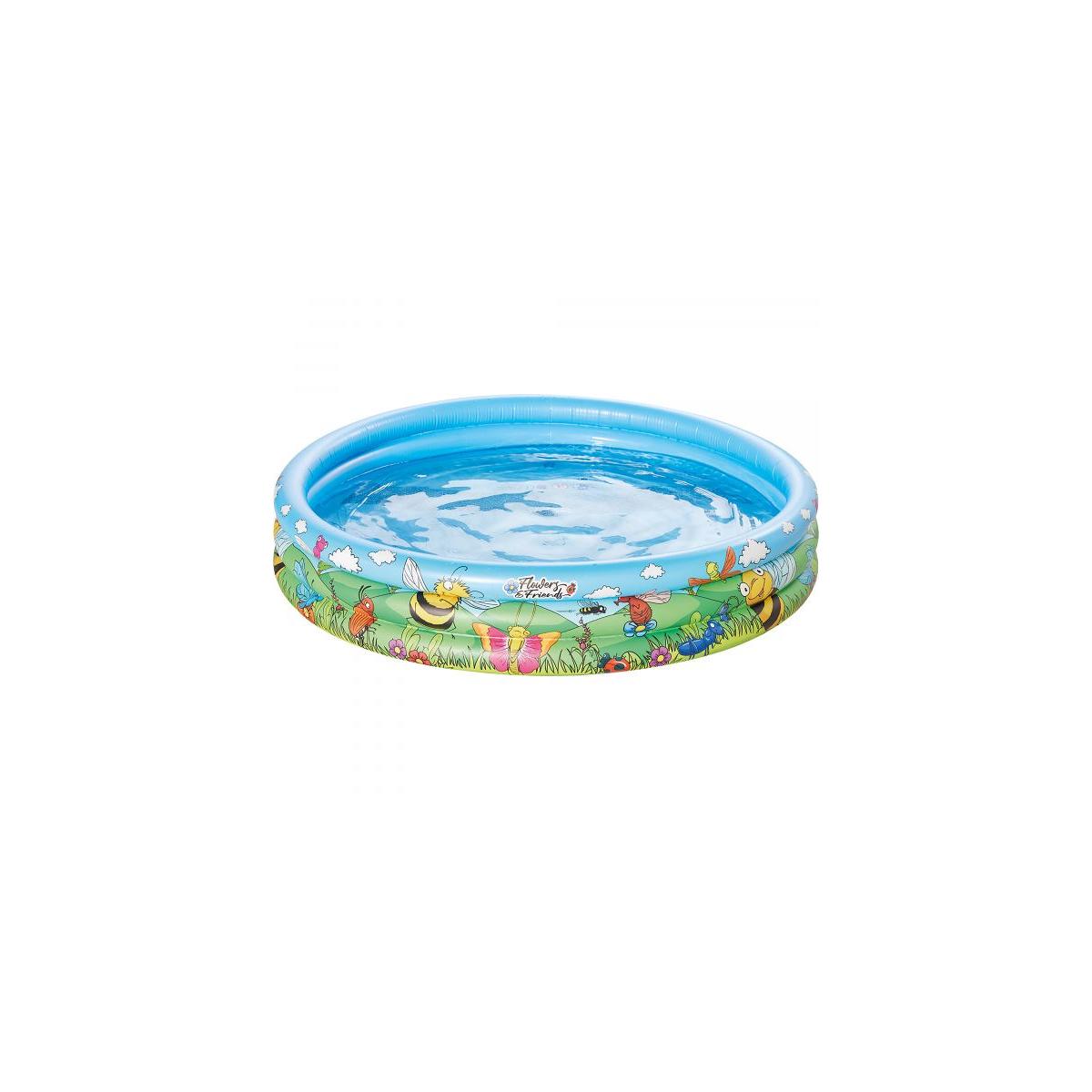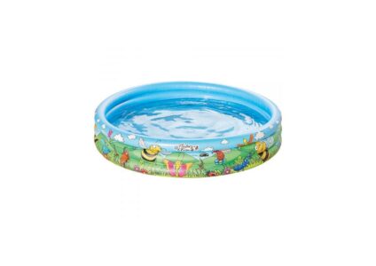 Die Beckenwand besteht aus einem Stück und ist aus besonders hochwertigem, strapazier- und wetterfestem Hartplastikmaterial gefertigt, mit drei aufblasbaren Wülsten am Beckenrand und Bodenablassventil. Technische Daten: Maße: ø 100 cm x H 23 cm Gewicht: 700 g