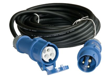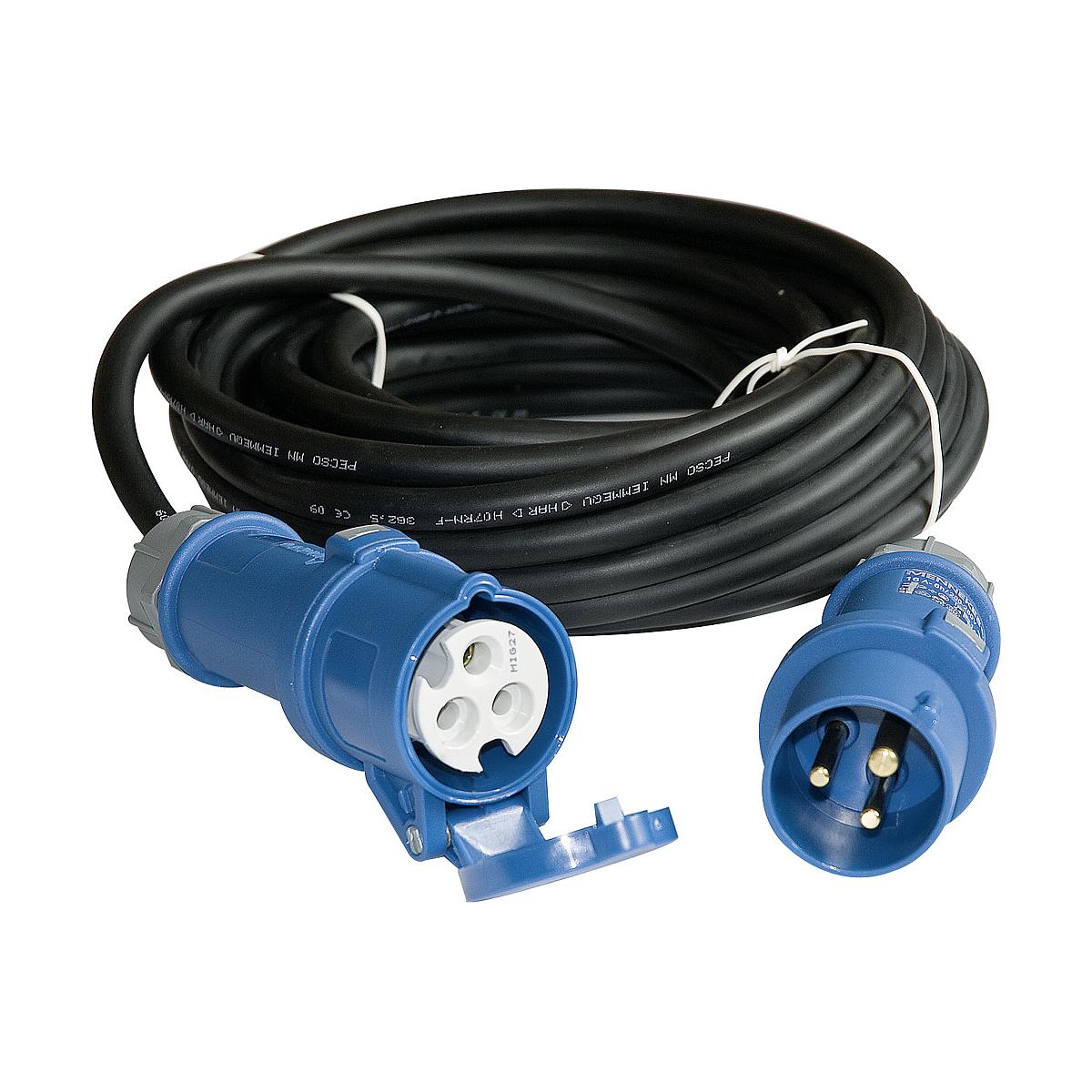 CEE-Verlängerung H 07 RN-F 3G 2,5 mm², mit CEE-Stecker/CEE Kupplung 16 A, 3-polig (3 x 2,5 mm²). Ohne Kontrollleuchte Technische Daten: Produktfarbe: schwarz, blau Länge: 25 m 16 A, 3-polig (3 x 2,5 mm²).