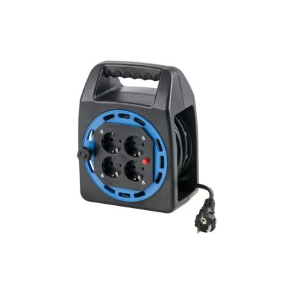 Kunststoff Kompakttrommel 230 V / 16 A, 4 x Schutzkontaktsteckdose, 20 m, Farbe schwarz / blau, Material: Kunststoff, Metall. Gehäuse aus hochbruchfestem Kunststoff Farbe: schwarz/blau 4 Schutzkontaktsteckdosen bequemes Auf- und Abrollen durch die eingebaute Kabelführung drehbare Handkurbeln, dadurch für Links- und Rechtshänder gleichermaßen geeignet der eingebaute Thermo-Überlastschutzschalter mit Wiederanlaufschutz bietet ein doppeltes Sicherheitssystem, welches hilft Unfälle zu vermeiden kein Gestell…