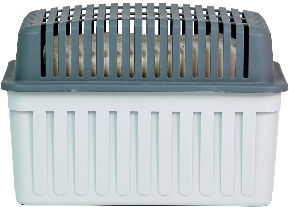 Der Raumentfeuchter macht Schluss mit feuchten, muffeligen Räumen und sorgt durch Senkung der Luftfeuchtigkeit für ein gesundes Raumklima. Er schützt mit dem sofort einsetzenden Entfeuchtungsvorgang Wände, Möbel, Textilien oder das Auto vor Feuchtigkeit, Schimmel und unangenehmen Gerüchen. Dabei arbeitet er ganz ohne Strom, ist nachfüllbar und somit unbegrenzt wiederverwendbar. Das schont die Umwelt und spart Geld. Im Lieferumfang enthalten ist ein 1 kg Wirkstoff-Granulat-Block. Dieser entzieht der…