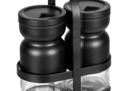 BLACK OUTDOOR KITCHEN by WENKO – das sind die cleveren Produkte, die in jeder Outdoorküche für BBQ, Brunch und Grillevent nicht fehlen dürfen. Gewürze sind wohl eines der wichtigsten Essentials für jede Grill- und Dinner Party. Mit diesem 3-teiligen Set haben alle Ihre Gewürze stets griffbereit und können diese auch noch stilvoll präsentieren. Die beiden formschönen Gewürzstreuer aus Glas können praktisch in der Halterung transportiert werden. So können die Lieblingsgewürze sicher zwischen Küche, Grill…
