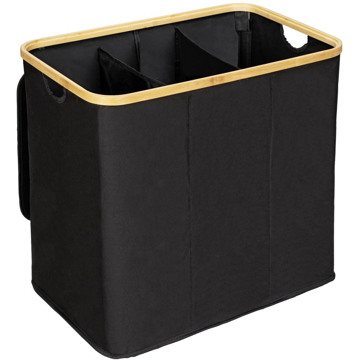 Wenko Trio Ecori Wäschetruhe, 105l, bambus, 3 fächer, schwarz