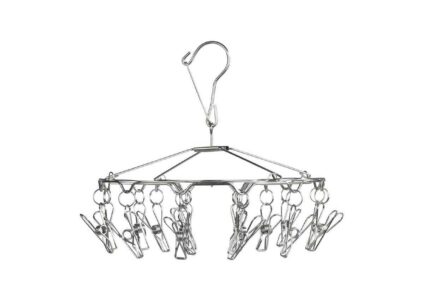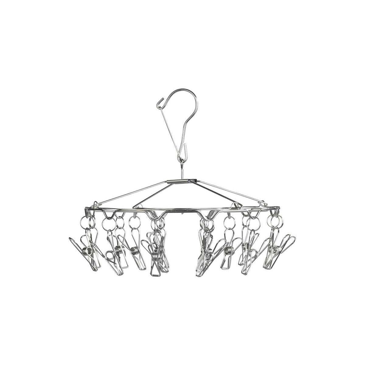 Der mobile Wäschetrockner aus rostfreiem Edelstahl für die kleine Wäsche zwischendurch. Der spezielle Haken mit Sturmsicherung hält das Wäsche-Rondell auch bei stürmischen Zeiten sicher fest. Ideal im Bad, auf dem Balkon, auf Reisen oder beim Camping. Platzsparend zusammenklappbar und bei Bedarf sofort einsatzbereit. Mit 18 Wäscheklammern zum Befestigen von Socken, Tüchern, Dessous, etc. Technische Daten: Material: Edelstahl Höhe: 26 cm Durchmesser: 27 cm Lieferumfang: 1x Wäsche-Rondell