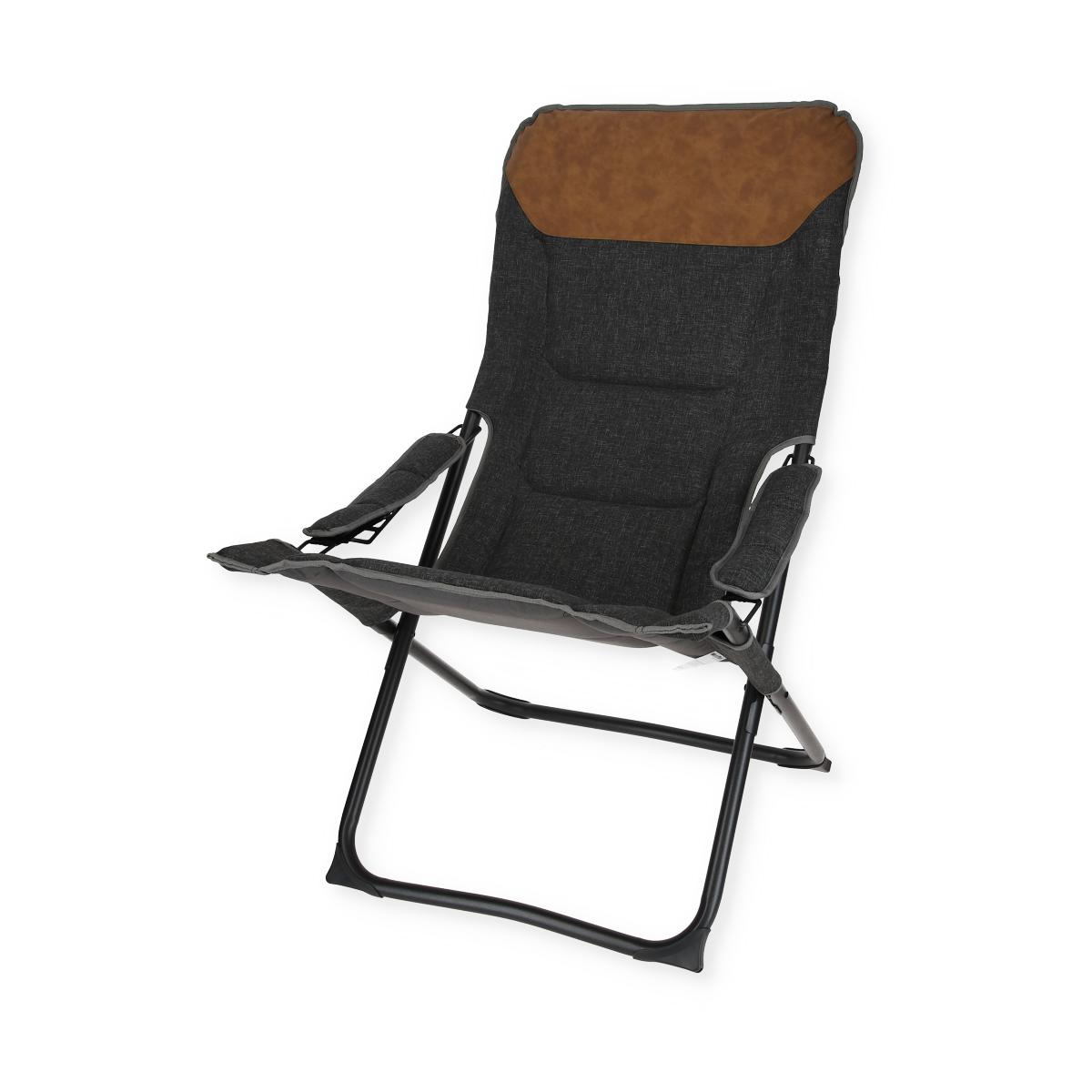 Lounge Sessel mit 3 Positionen zum Relaxen im Campingleben. Genießen Sie den lang bewährten Komfort mit dem einzigartigen Relax-Feeling. Der Bezug ist mit einem extra weichen Material ausgestattet, welches sich wie hochwertige Baumwolle anfühlt, das Kopfteil ist aus Kunstleder und sieht sehr edel aus. Mit dem abnehmbaren Kopfteil ist das Packmaß sehr kompakt.Technische Daten:Material: 100 % PolypropylenBelastbar bis: 120 kgFarbe: grauSitzhöhe: 35 cmMaße (B x T x H): 62 x 70 x 96 cmPackmaß: 60 x 100 x 20…