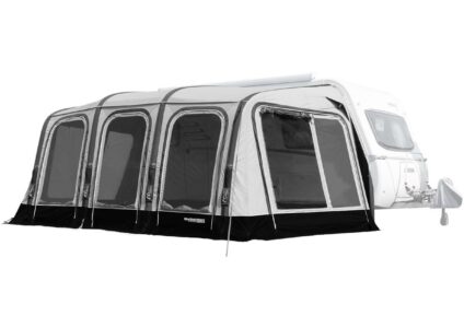 Das edle Design mit der modernen abgerundeten Form lässt keine Urlaubswünsche offen. Mit einer Tiefe von 265 cm bietet das Luftvorzelt Ceres ein ideales Raumgefühl. Durch den Volleinzug in der Kederschiene des Caravans lassen sich alle Fenster, Türen und Serviceklappen problemlos öffnen und das Zelt ist perfekt abgedichtet. Das hochwertige HydroTech® Ripstop Material, die Dauerventilation und die abgetönten Fenster sorgen auch an heißen Sommertagen für ein sehr gutes Raumklima. Durch die großen…