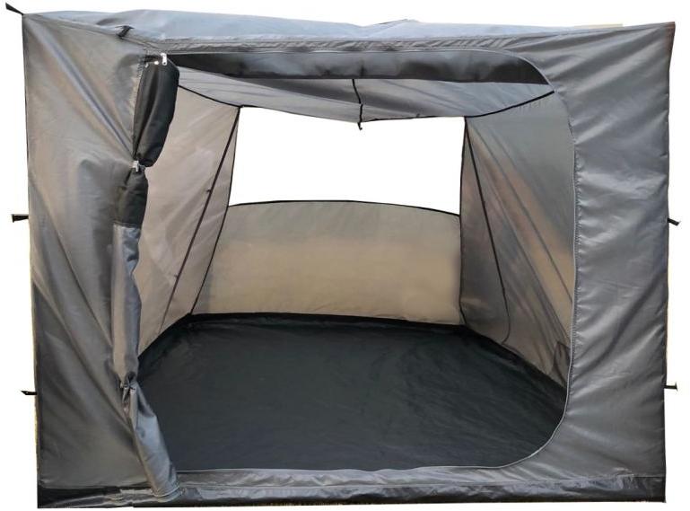 Das optionale Innenzelt für Anbau Annex mit Moskitonetz, schafft einen 180 x 200 cm Raum zum Schlafen. Technische Daten: Material: 100 % Polyester Farbe: grau, schwarz Maße (B x T x H): 180 × 200 × 160 cm Gewicht: 1,5 kg