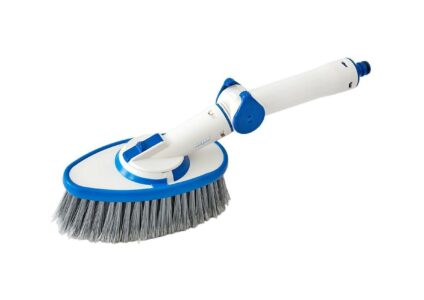 Hand-Waschbürste mit Schlauchanschluss und Abstellhahn. drehbarer Bürstenkopf durch Querstellung der Bürste rasche Reinigung von großen Flächen verstellbarer Griff vereinfacht die Reinigung an schwer zugänglichen Stellen mit extra Fach für Shampoosticks, d.h. Schamponieren und Absprühen in einem Arbeitsgang spezielle Breitstrahldüse/Fächerstrahl jederzeit zuschaltbarer Hochdruckstrahl für hartnäckige Verschmutzungen lackschonende, weiche Borsten Gummi-Kantenschutz für besonders schonende Reinigung…