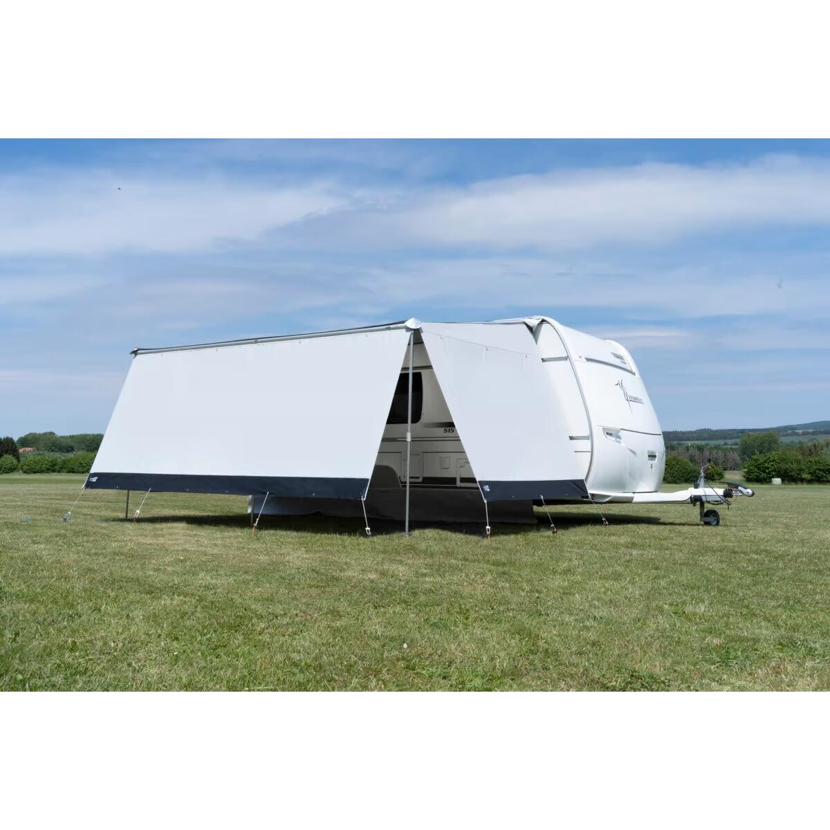 Campingfreude bei egal welchem Wetter Eine Schönwettergarantie können wir nicht anbieten, dafür aber den passenden Schutz für alle Fälle: An heißen Tagen sind Sie perfekt vor Sonnenstrahlen geschützt, dank wasserabweisendem Airtex-Gewebe aber auch vor Regen. Die schnelle und einfache Befestigung sorgt dafür, dass Sie zügig ein Dach über den Kopf bekommen. Optionaler Sonnen- Wind- Regen- und Sichtschutz für volleingezogene Rolli Markisendächer. Die Vorderwand wird ganz einfach in das Profil des ROLLI…