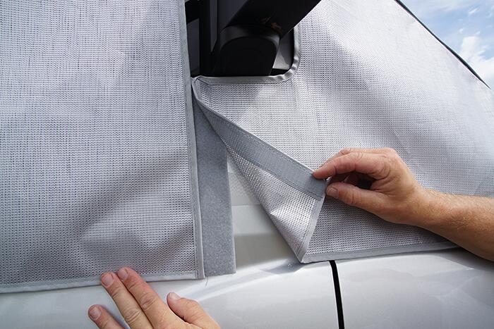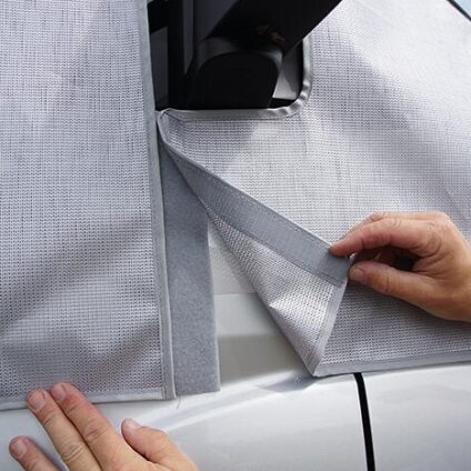 Die neue WIGO Sommermatte aus silbernem Mesh-Gewebe sorgt bei heißen Temperaturen für angenehmes Klima im Fahrerhaus. Trotz der hervorragenden Isolation behalten Sie dank des Mesh-Gewebes immer den vollen Durchblick nach draußen. Bei Dunkelheit und Nutzung des Innenlichts, kann ein Einsehen des Innenraums nicht ausgeschlossen werden. Technische Daten: Material: Mesh-Gewebe geeignet für: VW Crafter Einzelteile werden mit Klettverschluss verbunden Lieferumfang: Sommermatte, Packsack, Montageanleitung