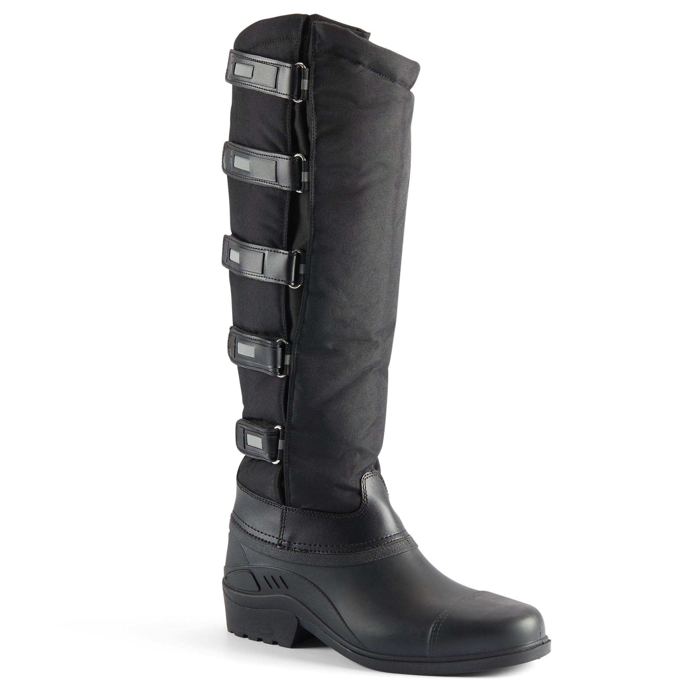 Diese Stiefel spenden Wärme und schützen die Füße vor Feuchtigkeit! Wärmeleistung::Mit Kunstfell gefüttert|Widerstandsfähigkeit::Gespritzte Sohle aus Thermoplastik|Einfache Handhabung::Klettverschluss, passt sich den verschiedenen Wadenweiten an|Haftung::Profilsohle speziell für Steigbügel|Wasserdichtigkeit::Wasserfestes Synthetikmaterial im Fußteil