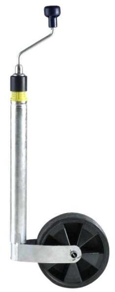 Stützrad mit Stützlastwaage für Wohnwagen von Winterhoff Technische Daten: Größe: 215 x 70 mm Rohr: Ø 48 mm Felge: Kunststoff Bereifung: Kunststoff Belastbarkeit im Stand: max. 150 kg Gewicht:5,3 kg