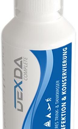 DEXDA Complete: zur Trinkwasserdesinfiktion und -konservierung für Camping, Reisen, Trekking, Boot/Yacht etc., desinfiziert und konserviert bis zu 500l Wasser (je nach Ausfåhrung), bekämpft Krankheitserreger: Viren, Keime, Pilze und Bakterien (wie z.B. Legionellen, E. Coli etc.), hält das Wasser im Tank bis zu 6 Monate frisch, mit praktischem Messbecher zur genauen Dosierung, inkl. Tröpfchen Einsatz für Trinkflasche, Kanister etc., für Kunststoff- und Edelstahltanks zur Trinkwasserdesinfektion…
