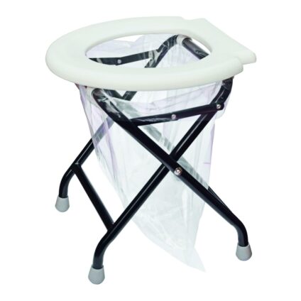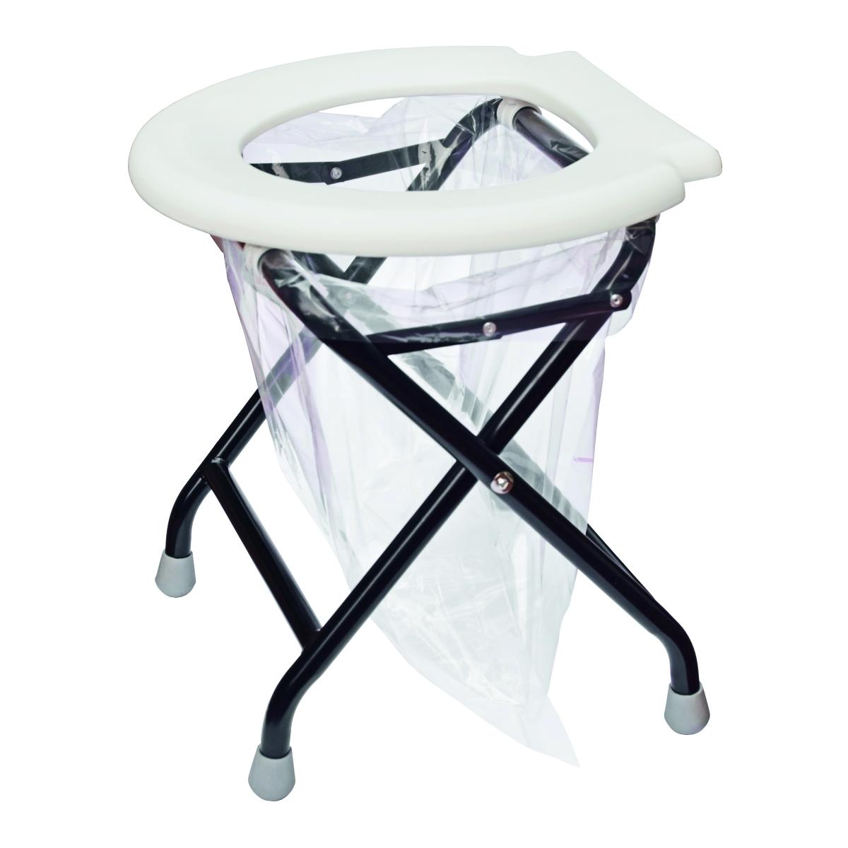 Praktische Klapptoilette für unterwegs. Sie lässt sich schnell und mühelos verstauen und ist im Handumdrehen einsatzbereit. Umweltschonend, da kein Wasser benötigt wird. . Inklusive 6 Plastikbeutel Technische Daten: Material Rahmen: Stahl Farbe: weiß Rahmen Ø: 21 cm Maße: 39 x 40 x 46 cm