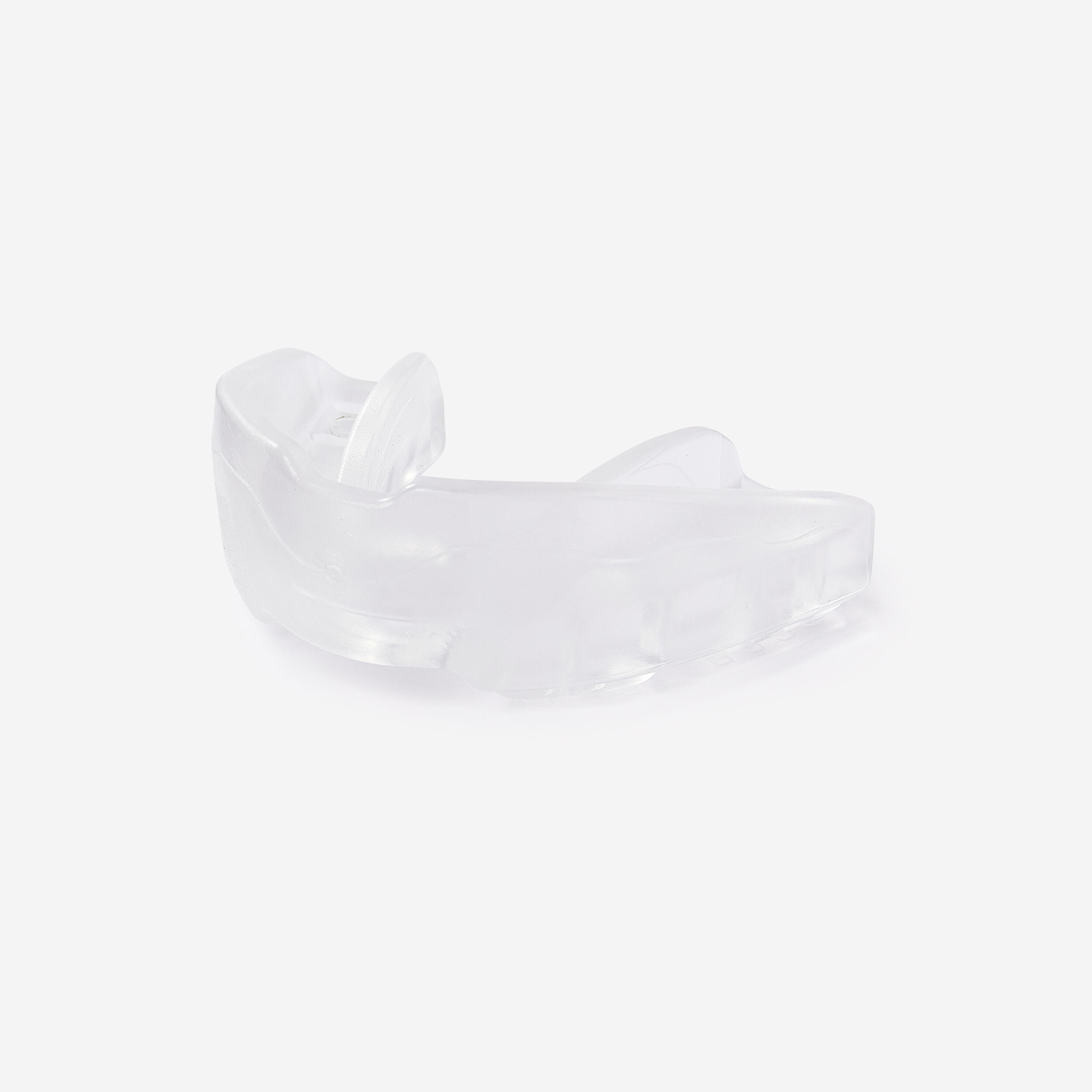 Dieser leicht thermoformbare Zahnschutz dämpft die stoßbedingten Vibrationen während der Angriffe. Dank des 2 mm breiten Luftdurchlasses kann der Mund während des Boxens geschlossen gehalten werden. Schutz vor Stößen::Es handelt sich um persönliche Schutzausrüstung entsprechend der Norm NF S72-427|Passform::Thermoformbar zur Anpassung an den Kiefer nach Eintauchen in kochendes Wasser. |Leichtere Atmung::2 mm breiter Luftdurchlass, damit du auch mit geschlossenem Kiefer atmen kannst.