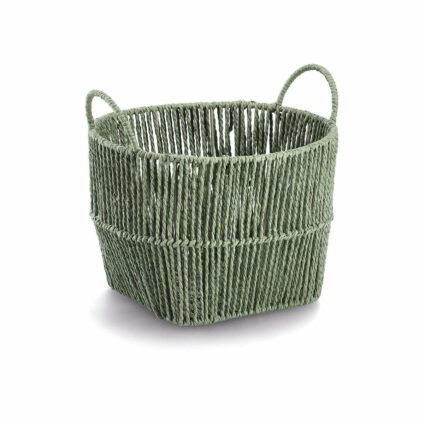 Sooo viel Platz in so einem modernen und stylischem Aufbewahrungskorb! Aus einzel-gespannten und geknoteten Papierflechten besteht dieser Aufbewahrungskorb in modernem salbei. Der steife Korb lässt sich super als Deko Objekt verwenden und kann sich in jedem Raum sehen lassen. Selbstverständlich kann der Korb auch als stylische Aufbewahrung verwendet werden. Egal ob für Bastel-/Strickmaterialien oder Spielzeuge.Der Korb kann in Bad, Wohnbereich oder Schlafzimmer eingesetzt werden. Ganz egal denn hier…