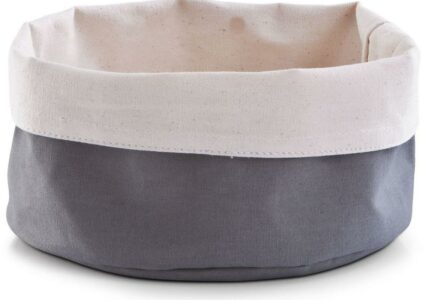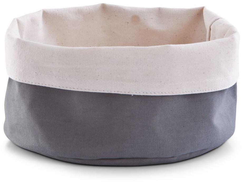 Mit diesem Baumwollbeutel gewinnen Sie einen praktischen Haushaltshelfer! Egal ob in der Küche zum Servieren von Brot und Brötchen oder im Bad/Wohnbereich zum Verstauen jeder Art von Kleinigkeiten. Technische Daten: Material: 100 % Baumwolle Farbe: anthrazit, creme Durchmesser: 20 cm Höhe: 12 cm Gewicht: 84 g
