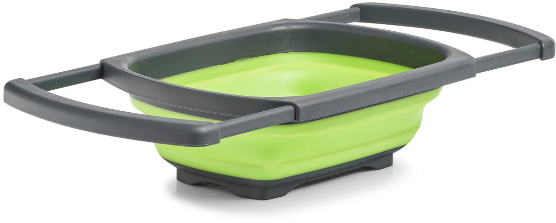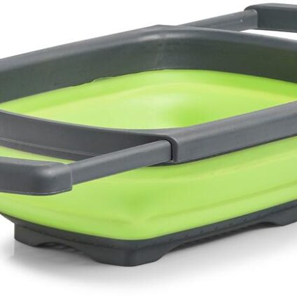Sie möchten einen Sieb der funktional ist, nicht zu viel Platz in Ihrem Küchenschrank einnimmt und gleichzeitig ein schönes Design hat? Dann werden Sie von unserem Falt-Sieb begeistert sein. Das Sieb ist in verschiedenen Größen erhältlich, egal ob zum Waschen von Gemüse und Obst oder zum Abtropfen von Pasta – Das Falt-Sieb immer die richtige Wahl. spülmaschinenfest zweifach verstellbares Sieb mit herausziehbarem Griff Technische Daten: Material: Kunststoff Farbe: grün / anthrazit Maße: 44 / 68 x 29,8 x…
