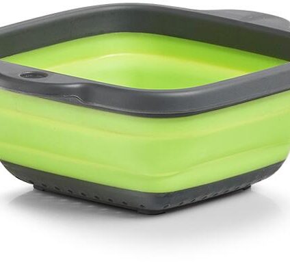 Das faltbare Küchensieb eignet sich perfekt zum Waschen von Gemüse und Obst. Dank der faltbaren Wände lassen sich kleine sowie auch größere Mengen in dem handlichen Sieb waschen. Das Loch an einem der beiden Griffe ermöglicht ein sichereres Aufhängen in Ihrer Küche. spülmaschinenfest mit Loch zum Aufhängen Technische Daten: Material: Kunststoff Farbe: anthrazit/grün Maße: ca. 21,9 x 18 x 2,8 / 7,9 cm Lieferumfang: Faltsieb