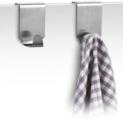 Dieses praktische Handtuchhaken-Set aus hochwertig verchromtem Edelstahl ist ideal um Ordnung in Ihre Küche zu bringen. Der Halter ist sehr platzsparend und Sie müssen nicht unnötig weitere Löcher an die Wand bohren um Ihre Handtücher aufzubewahren. Die Handtuchhaken können einfach an Schranktüren mit einer maximalen Stärke von 2 cm eingehängt werden und verstaut so ordentlich und griffbereit Ihre Handtücher. Produktmerkmale: aus hochwertigem Edelstahl gefertigt zum Einhängen an Schranktüren mit Tür…
