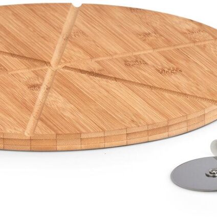 Dieses Schneidebrett-Pizzaschneider-Duo ist ein Must-Have für jeden Pizzaliebhaber. Das robuste Schneidebrett aus Bambus verfügt über spezielle Einkerbungen, welche das Schneiden Ihrer Pizza noch einfacher macht. Die Pizza lässt sich auf diese Weise im Handumdrehen in 6 handliche Stücke zerteilen. Klinge und Halterung des zugehörigen Pizzaschneiders bestehen aus hochwertigem Edelstahl. Wer Pizza mag wird dieses Set lieben! Brett mit Schneide-Hilfslinien für 6 Stücke inklusive Pizzaschneider Technische…