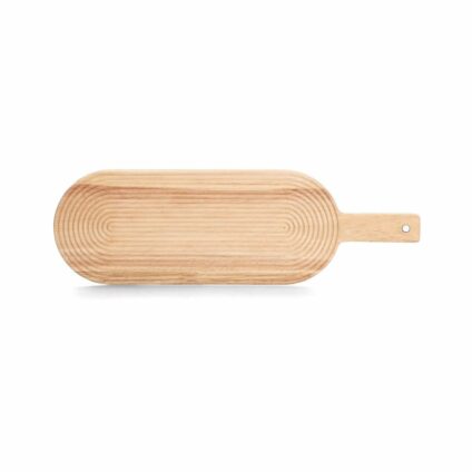 Dieses Brett aus Bambus eignet sich zum Schneiden und Servieren jeder Speisen. Das Brett besteht aus schnittfestem Gummibaum, ein Material mit messerschonenden Eigenschaften. Die kreisförmigen Rillen auf der Oberfläche des Bretts verleihen ihm einen außergewöhnlichen, modernen Touch. Es ist mit einem Tragegriff ausgestattet und besitzt eine schöne, strukturierte Oberfläche. Überzeuge mit deine Gäste und kreiere eine unvergessliche Festtafel mit diesem modernen Servier- und Schneidebrett! gelochter Griff…