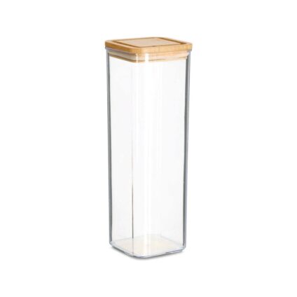Wohin mit Müsli, Pasta, Mehl und Co.? Die einfache Lösung: Diese praktische Vorratsdose mit Bambusdeckel. Diese transparente Vorratsdose ist aus transparentem Kunststoff hergestellt und einem nachhaltigem Deckel aus Bambus. Der Deckel schließt luftdicht und schützt den Inhalt vor jeglichen äußeren Einflüssen. So halten sich deine Vorräte lange frisch. Die Einkerbungen am Deckel ermöglichen nicht nur eine bessere Griffigkeit beim Öffnen des Deckels, die Vorratsdosen lassen sich hierdurch auch perfekt…