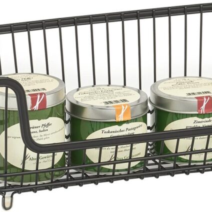 Dieser vielseitige Vorratskorb im modernen Industrial-Design eignet sich perfekt zum Aufbewahren von Vorräten. Die seitlichen Griffe sind sowohl nach Innen als auch noch Außen einklappbar. Der besondere Clou: Der Vorratskorb ist stapelbar und lässt sich auch mit der kleineren Variante erweitern. So können Sie nach Ihren eigenen Bedürfnissen zusätzlichen Stauraum schaffen. Du Füße der Körbe sind mit einem Kunststoffschutz überzogen, auf diese Weise bleiben Ihre Oberflächen von unschönen Kratzern…