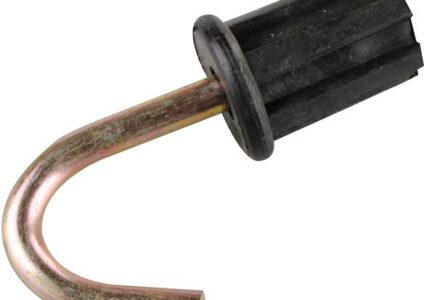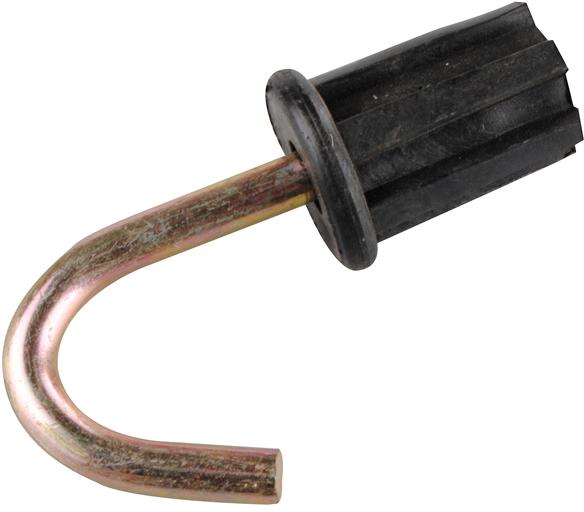 Aus schwarzem Kunststoff mit gebogenem Metallstift.Technische DatenDurchmesser: 19 mmMaterial: MetallPackmaße: 12,3 x 11,8 x 2,1 cmGewicht: 53 gFarbe: schwarzLieferumfang: 2 Endstück Haken