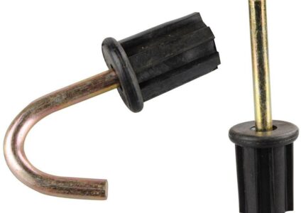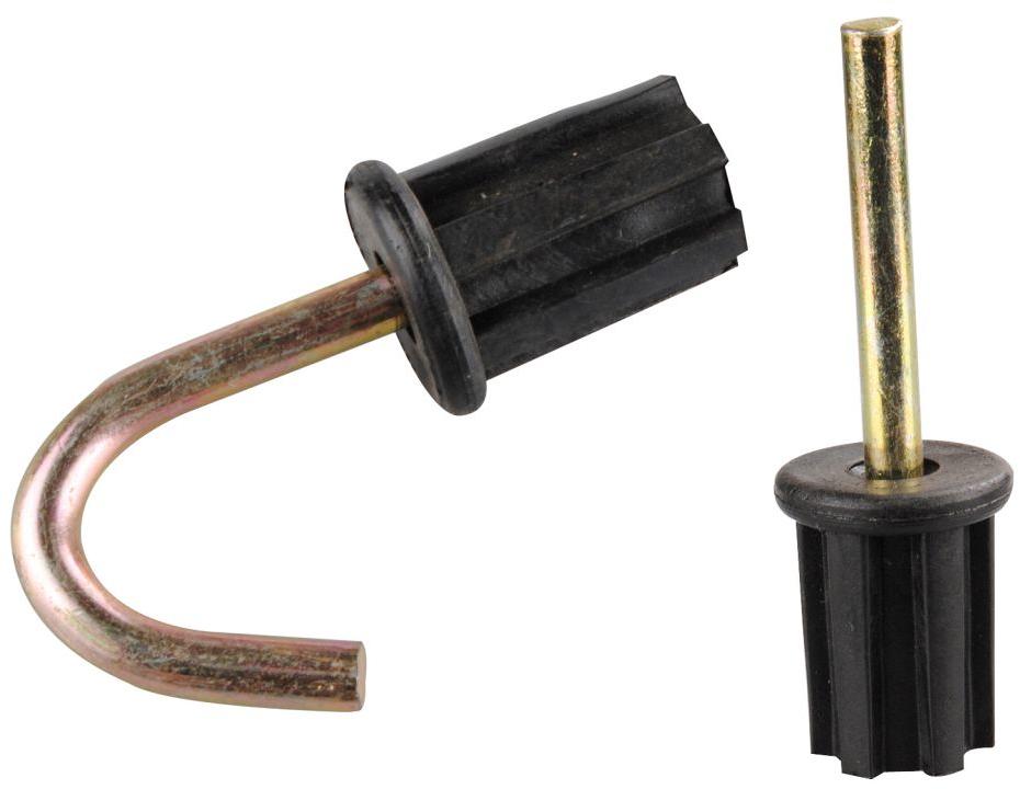 Aus schwarzem Kunststoff mit gebogenem Metallstift.Technische DatenDurchmesser: 25 mmMaterial: MetallPackmaße: 12,1 x 11,7 x 3,1 cmGewicht: 70 gFarbe: schwarzLieferumfang: 2 Endstück Haken