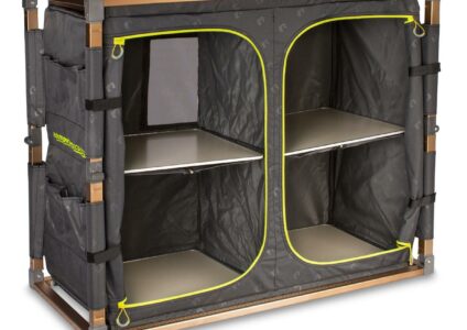 Der Eco Fold Twin V2 von Zempire in seinem ansprechendem Design mit Bambus-Tischplatte eignet sich hervorragend als Organizer in Wohn, Schlaf, oder Küchenbereich. Verfügt über eine Arbeitsfläche zum kochen und zubereiten von Camp-Mahlzeiten aus natürlichem wetterfestem und hitzebeständigen Bambus und einen rostfreien Aluminiumrahmen. Die beiden unteren Schränke mit Reißverschluss und die seitlichen Aufbewahrungstaschen tragen dazu bei, dass alles organisiert bleibt. Ein ausziehbares Ablagefach hält…