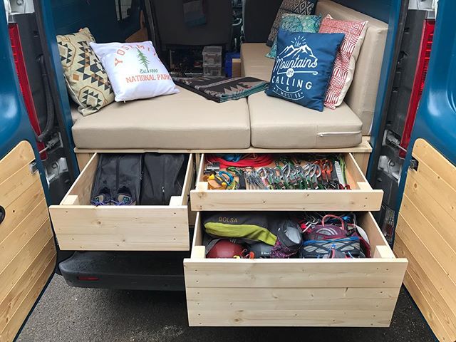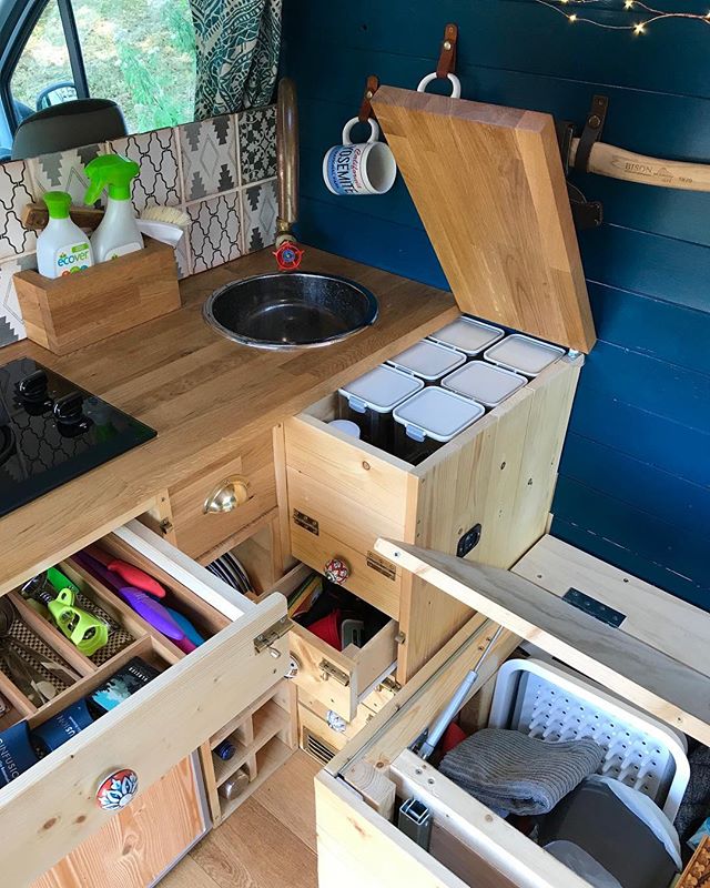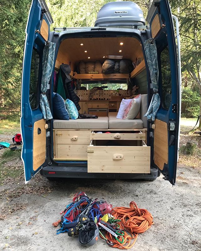 Auf einmal lag es auf der Hand: Nach unzähligem Auf- und Abbauen des Zelts auf ihren Kletter-Trips, war es für das Paar beschlossene Sache: Sie bauen sich einen Camper aus. Handwerkliche Erfahrung hatten sie keine, aber dafür einen starken Willen und YouTube-Tutorials. Ein Luxus-Ausbau sollte es ohnehin nicht werden. Für Izzy und Laurie waren nur drei Sachen wichtig: viel Stauraum, ein guter Kühlschrank und ein bequemes Bett.