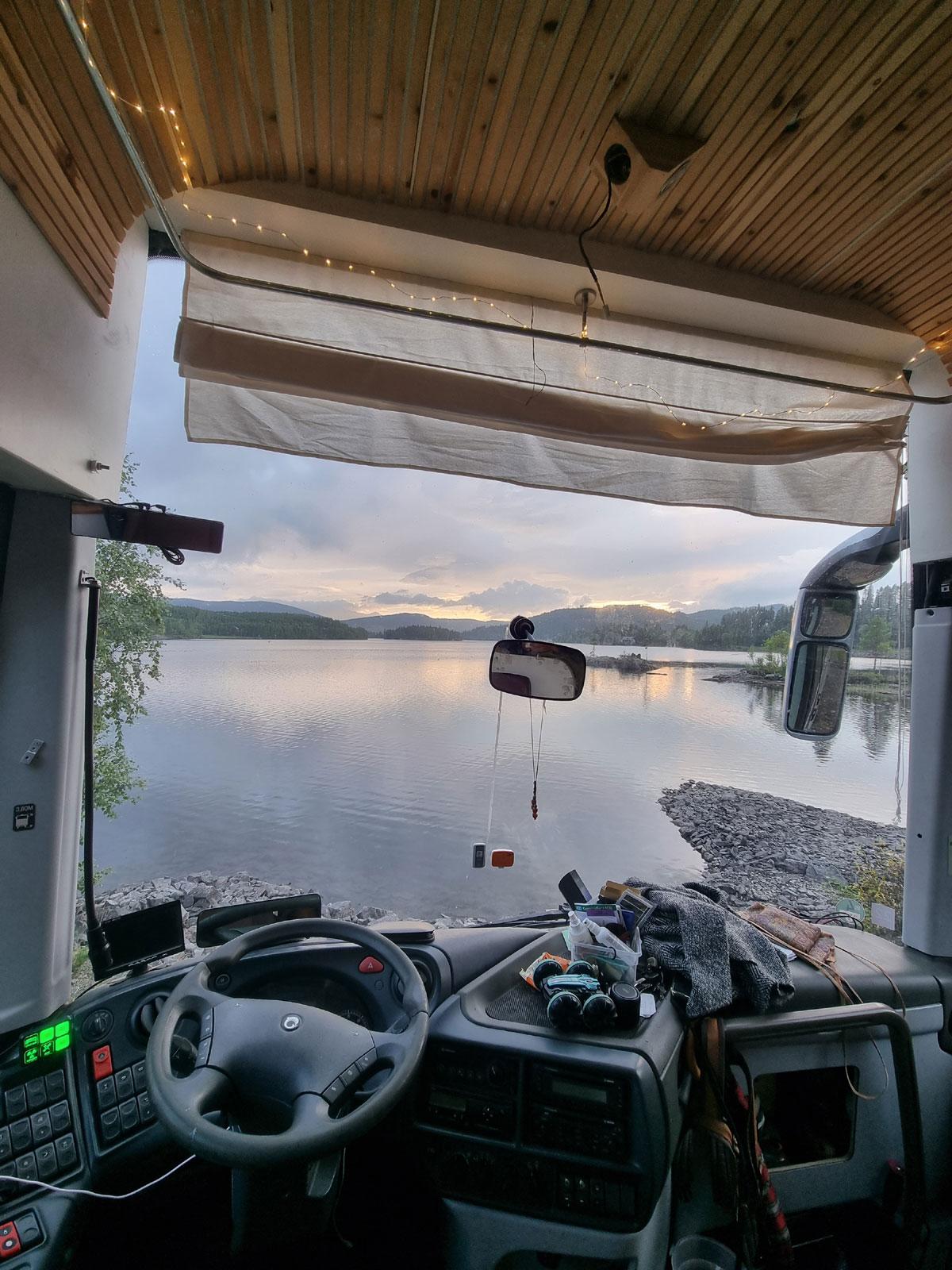 Wir haben unseren Bus für uns als Familie ausgebaut, um gemütlich und komfortabel darin leben zu können. Es ist schon sehr angenehm mitten in Schweden im Wald zu stehen, die Einsamkeit und Ruhe zu genießen und das Geschirr vom Abendessen und das Besteck vom Grill einfach im Anschluss in die Spülmaschine zu schmeißen. 🙂 Oder nach einem Regentag in Norwegen die nassen und dreckigen Kleider in die Waschmaschine zu stecken. Zwei Dinge, die wir auch in Zukunft auf unseren längeren Reisen als Familie nicht missen möchten. Durch unser großes Solarsystem, den großen Wasser-, und Abwassertank ist es uns möglich, je nach Wetterlage, zwischen  vier und zehn Tagen autark stehen zu können.