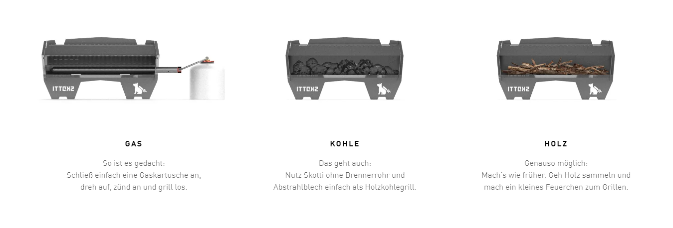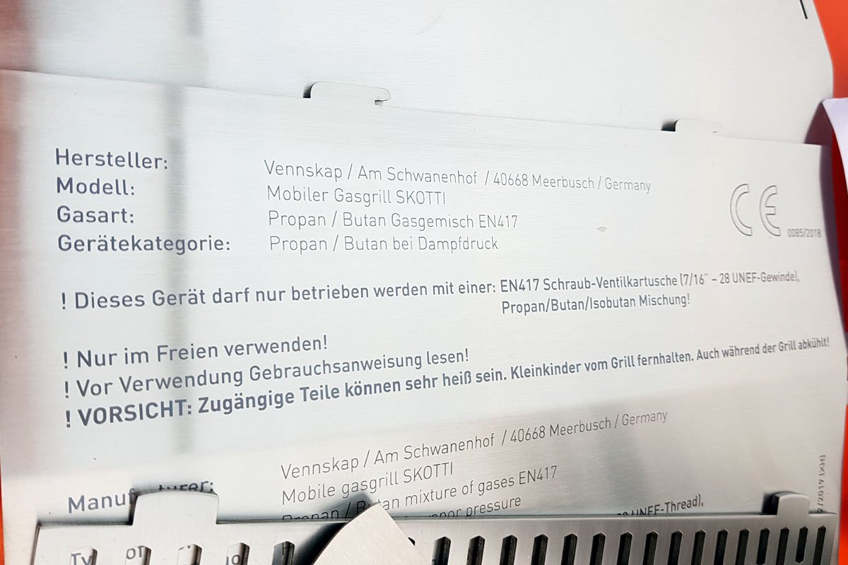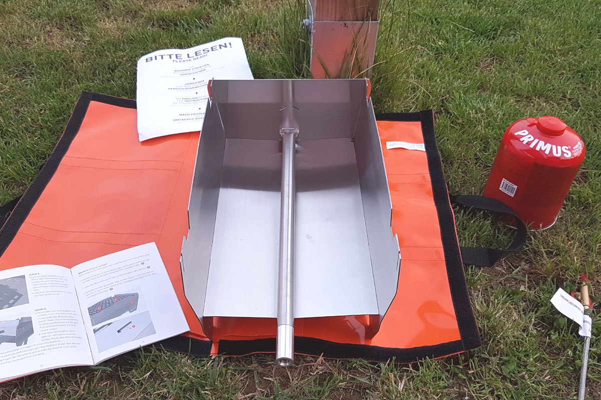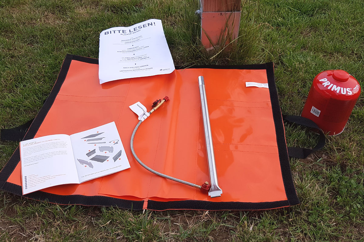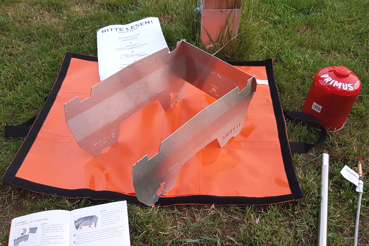 [adrotate group=“1″]Der nur 3,0 Kilogramm leichte und komplett zerlegbare SKOTTI wird von der deutschen Firma Vennskap GmbH & Co. KG aus 40668 Meerbusch hergestellt und vertrieben. Er besteht komplett aus Edelstahl und fast alle Teile lassen sich in der Spülmaschine reinigen. Die Aufbauanleitung ist extrem leicht verständlich (den Aufbau schafft wirklich jeder. Auch mit zwei linken Daumen) und dank der praktischen Tasche (ebenfalls Spülmaschinen-fest) lässt er sich sehr gut transportieren. Ach ja: Wenn eure Gaskartusche mal alle ist, kann man den SKOTTI sogar mit Kohle oder mit Holz befeuern – der Edelstahl-Konstruktion sei Dank.