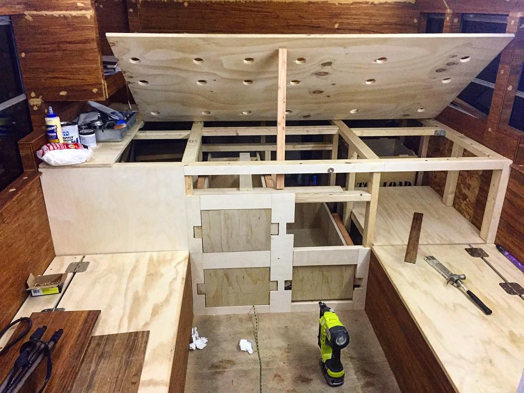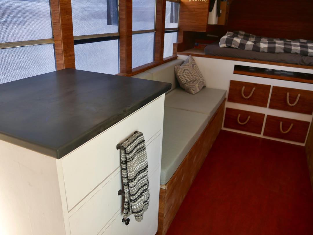 Für die Inneneinrichtung konnte ich Bambus-Holz verwenden, das ich über einen Bekannten beziehen konnte. Ich finde, trotz meines Learning-by-Doing Vorgehens ist mir der Innenausbau echt gut gelungen.