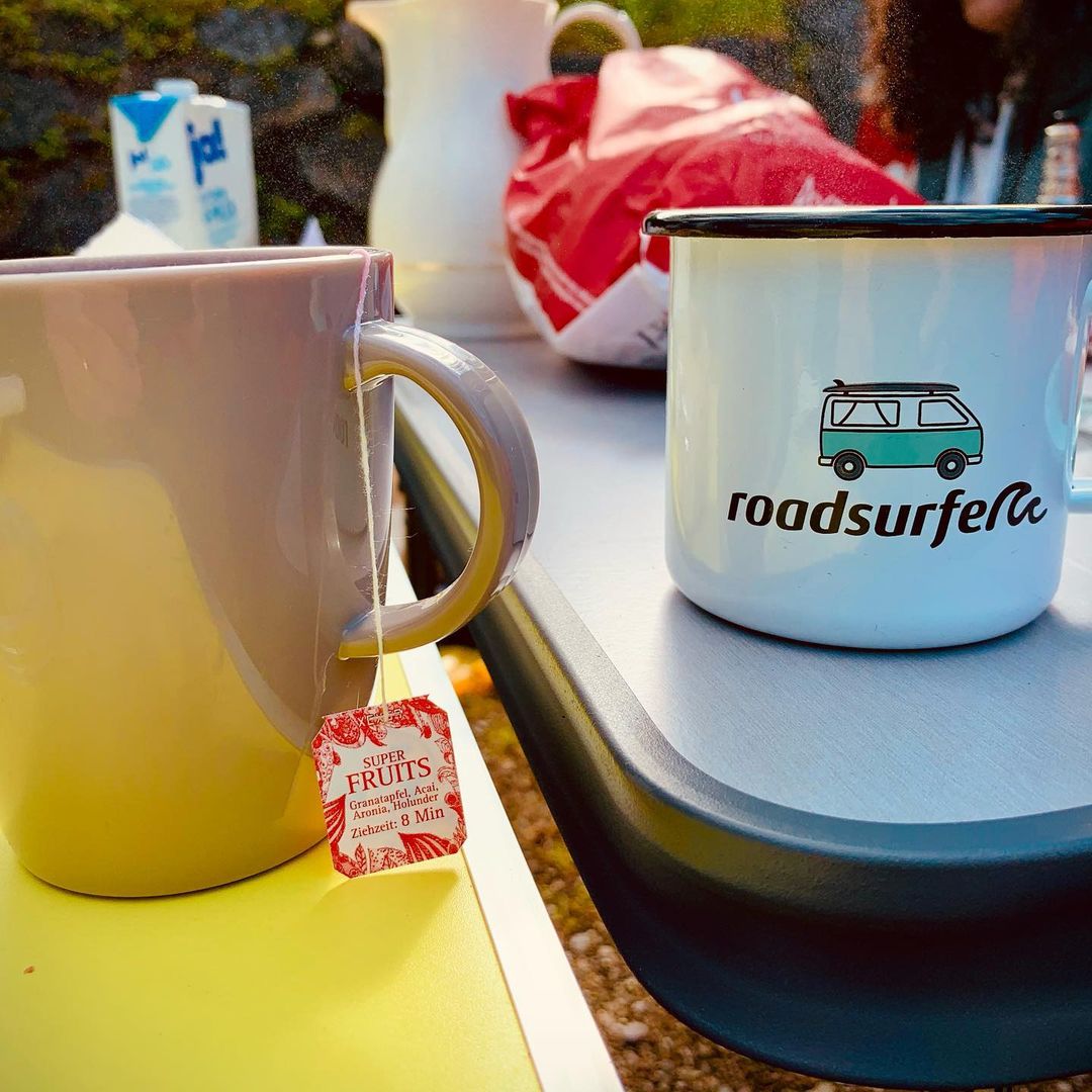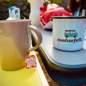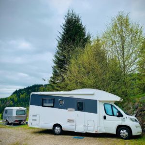 Wir stehen ganz alleine auf dem Platz… alles sehr entspannt hier… waren eben schon lecker essen… 🍰