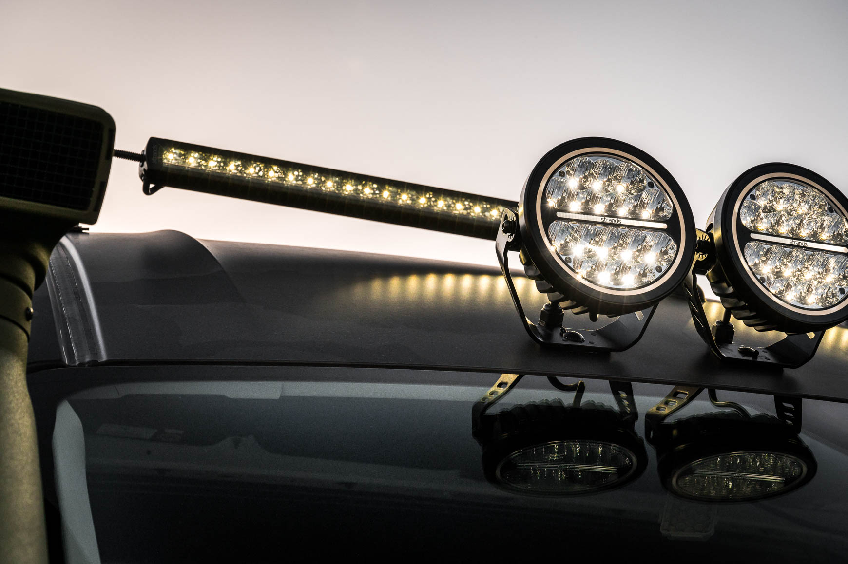 - Lightbar auf dem Dach mit LED-Tagfahrlicht (zweifarbig) und Arbeitslicht